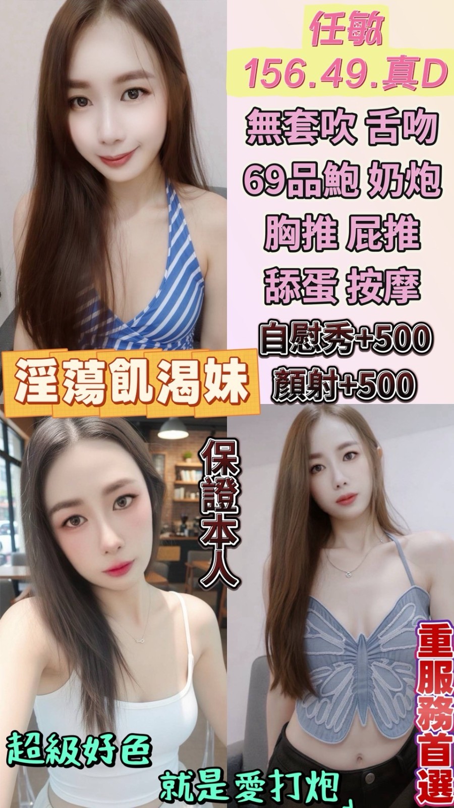 無套吹/共浴殘廢澡/親密KISS.舌吻(視個人衛生和妹妹現場感覺.自行開發)/共浴/六九/胸推/屁推/奶泡/按摩/品鮑/舔蛋/免費射後清槍